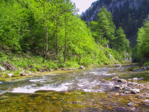 Das Höllental liegt eingebettet zwischen dem Schneeberg und der Rax, und ist geprägt von einem wildromantischen Charakter, der von steil aufragenden Felswänden, urtümlichen Bergwäldern und dem rauschenden Wasser der Schwarza gebildet wird, die hier durch eines der landschaftlich schönsten Gebiete der Voralpen fließt. Hier ist ausschließlich Fliegenfischen erlaubt. Limitierte Lizenzzahl.