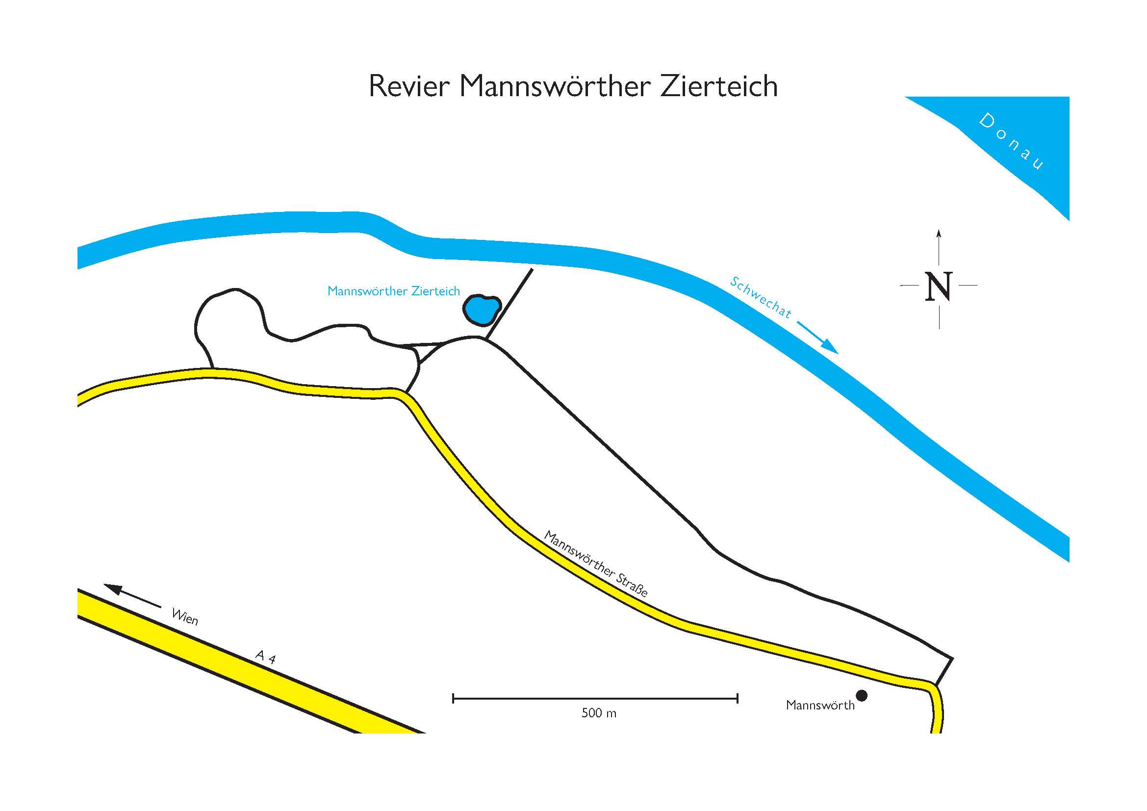 Teich von Schwechat kommend bei der Ortseinfahrt Mannswörth links zur Schwechat